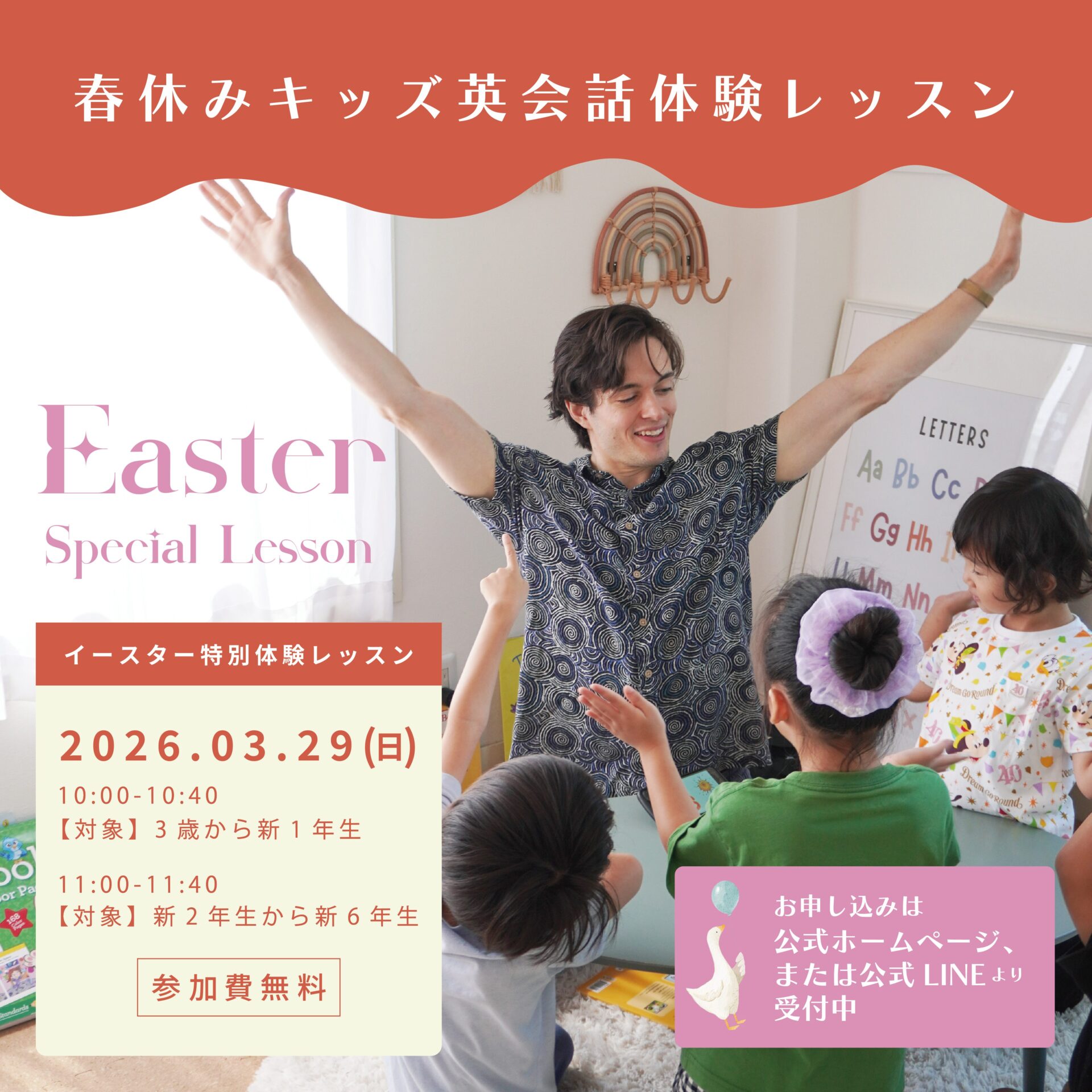 ということで、毎年好評の春休みイースターイベントを今年も行います。